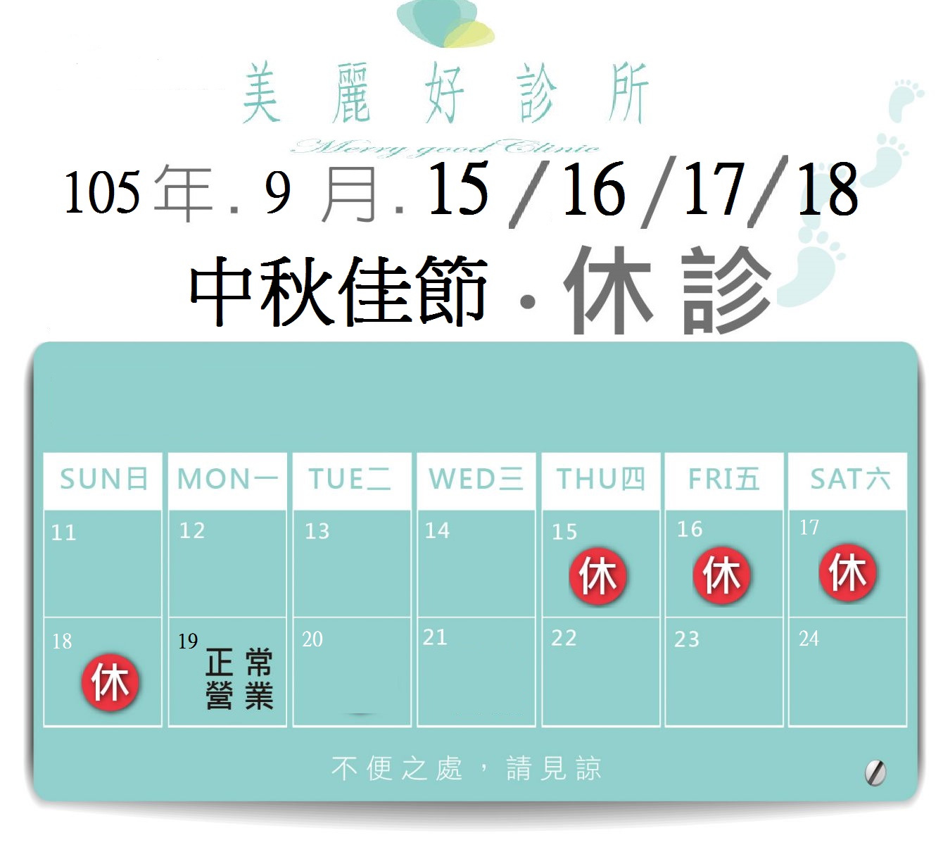 中秋節休診公告
